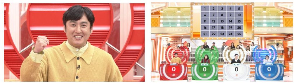 これまでは原則として一般出場者4名での大会をお届けてしてまいりましたが、放送開始51年を迎えた本タイミングで出場枠を変更し、赤・緑・白・青と4色ある解答席のうち赤の席を「ゲスト解答席」に設定、毎回大会に関連する芸能人・有名人が登場します。予選を勝ち抜いてきた出場者に、芸能人はどう立ち向かうのか!?新たな歴史を刻むアタック25にぜひご注目ください。