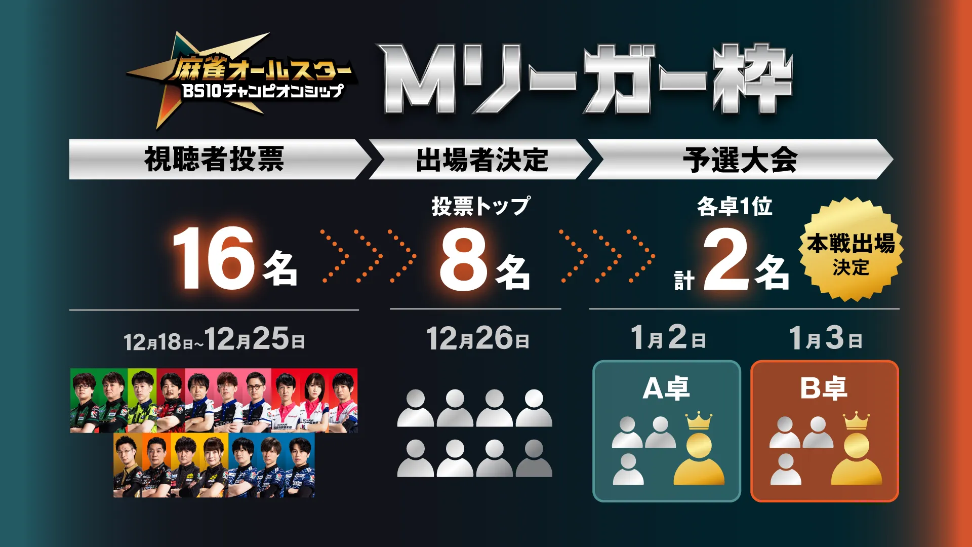 勝者2名がBS10チャンピオンシップ2026に出場できます。