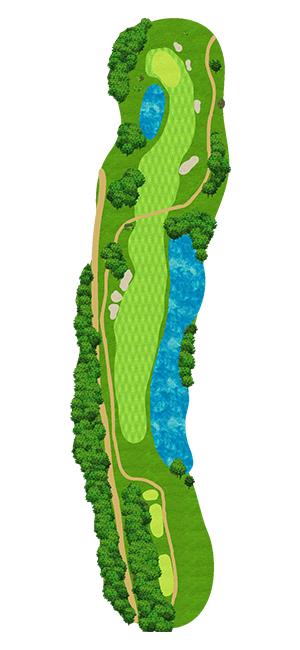 注目は15番、16番、17番の3ホール。池の周りに三角形を描くように続いている。15番は1オン可能なパー4でイーグルのチャンスもあるが、左側の池が効いていてボギー以上の危険もはらむ。