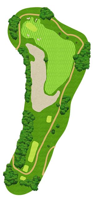 注目は最後の3ホール。16番パー4は1オン可能で2打目地点からグリーン先の左側の池が効いていて、チームがどのようなプランを選択するか興味深い。17番パー3は左に大きな池が広がり、状況次第でイチかバチかの決断を迫られる。18番は右サイド全域が池となるパー5。距離的には2オンも可能でイーグルで大逆転もあるスリリングな最終ホールだ。