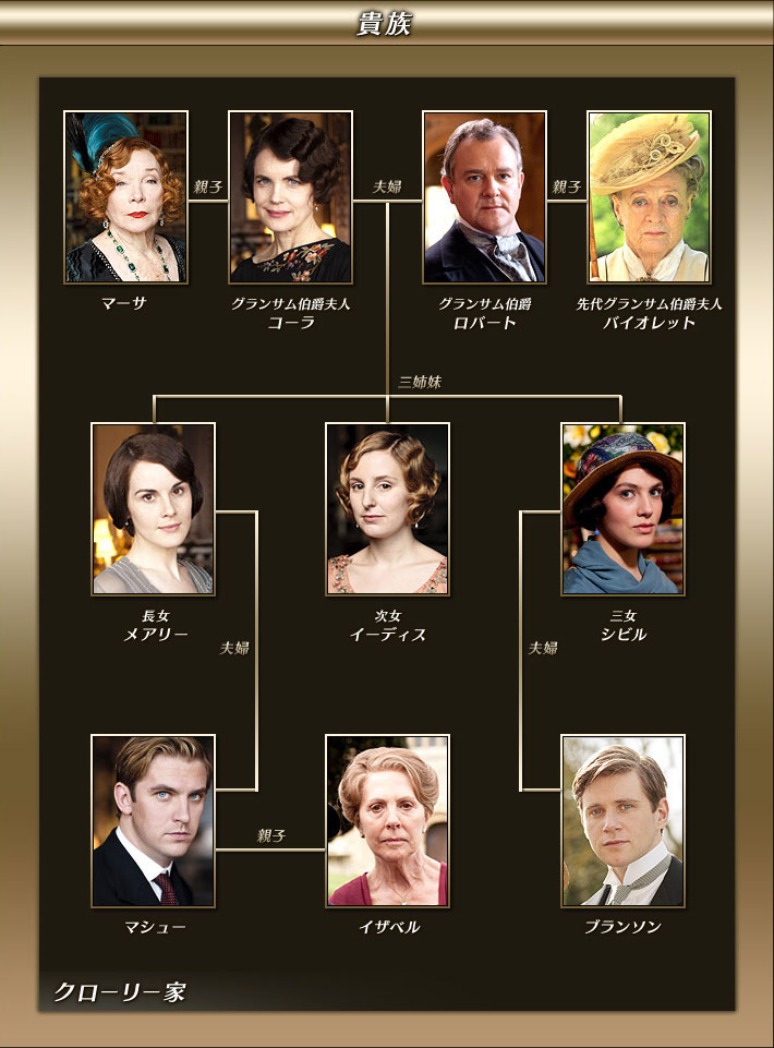 声:片貝 薫アメリカから嫁いだ富豪の娘。保守的な夫に比べ合理的で、時に夫を励まし陰でダウントンを支える強く優しい伯爵夫人。